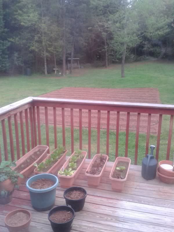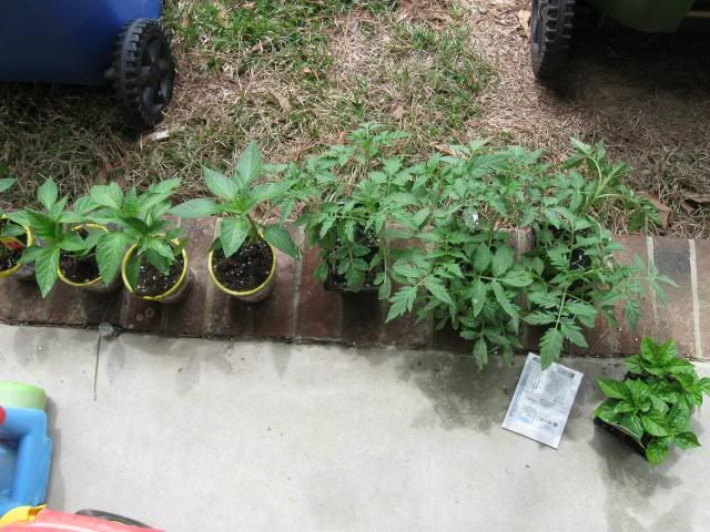 Not pictured...planted seeds of 10 each Sugar baby watermellons, Long eight cucumbers, yellow squash, radishes, broccoli. and one container of beefsteak tomatoes.